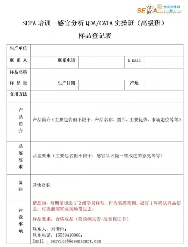 >>【樣品征集】QDA/CATA高級班樣品征集,解決您的感官工作難題!
