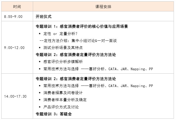 適用對象:有一定基礎的感官分析師、消費者研究人員、企業(yè)研發(fā)人員、第三方檢測人員、高校老師、市場及公司管理者等