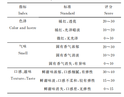 表1脊尾白蝦感官評(píng)定標(biāo)準(zhǔn)