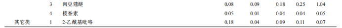 表3 基于氣相色譜質(zhì)譜(GC-MS)鑒定抓飯共有揮發(fā)性成分