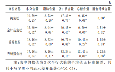 不同菌菇魚松主要營養(yǎng)成分的結(jié)果分析