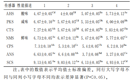 表4 不同菌菇類魚松電子舌傳感器數(shù)據(jù)的差異性分析