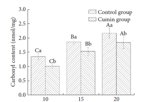 圖4  孜然對烤羊肉餅中羰基含量的影響