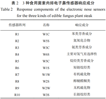 圖1 3種食用菌素肉排電子鼻試驗(yàn)結(jié)果