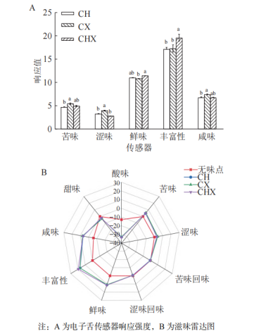 電子鼻電子舌聯(lián)用的電子感官技術(shù)已經(jīng)成為食品品質(zhì)風(fēng)味分析的重要手段。這兩種技術(shù)的聯(lián)合使用可以更加全面地解析食用菌素肉排的風(fēng)味特性,幫助生產(chǎn)廠家對食用菌素肉排的風(fēng)味進(jìn)行實(shí)時(shí)監(jiān)控和評估,確保產(chǎn)品質(zhì)量的穩(wěn)定性和一致性。