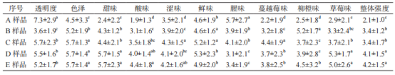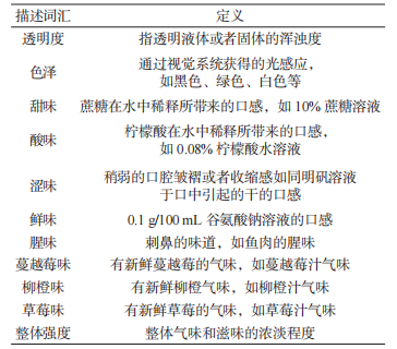 表1 不同口味膠原蛋白固體飲料的感官描述詞匯表2定量描述分析結(jié)果