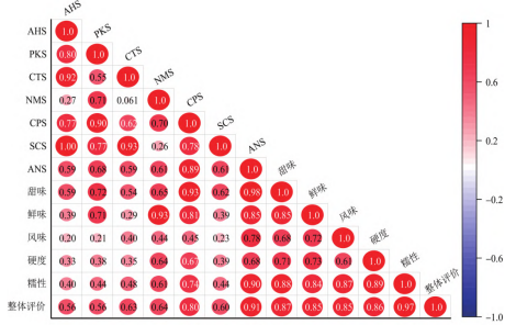 圖3 菜用大豆電子舌和感官評價間相關(guān)性分析