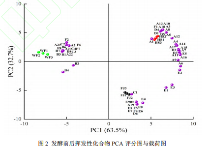 馬鈴薯濃汁發(fā)酵前后揮發(fā)性化合物PCA分析