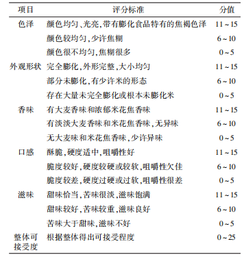 表1 氣流膨化青稞米感官評分標(biāo)準(zhǔn)