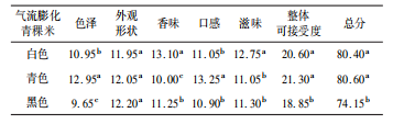 表2   3種色澤氣流膨化青稞米的感官評價結(jié)果