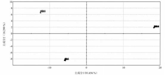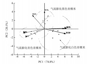 圖6   3種色澤氣流膨化青稞米的電子眼PCA圖