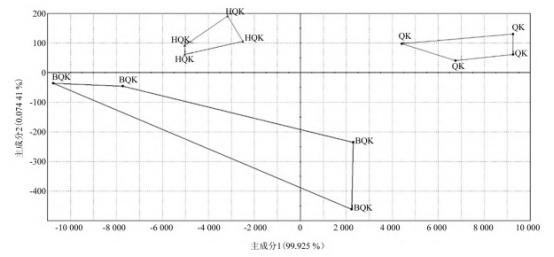 3.同色澤青稞膨化米電子鼻分析結(jié)果