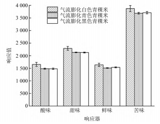 圖5   3種色澤氣流膨化青稞米的電子舌響應(yīng)器柱狀圖