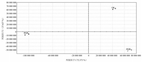 圖4  3種色澤氣流膨化青稞米的電子舌DFA圖