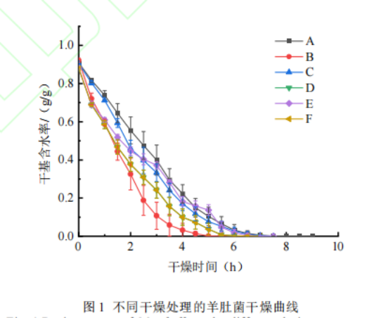 不同干燥處理羊肚菌干燥時間