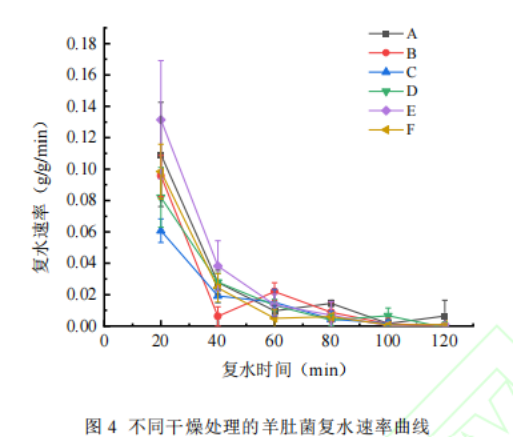不同干燥處理羊肚菌復水速率